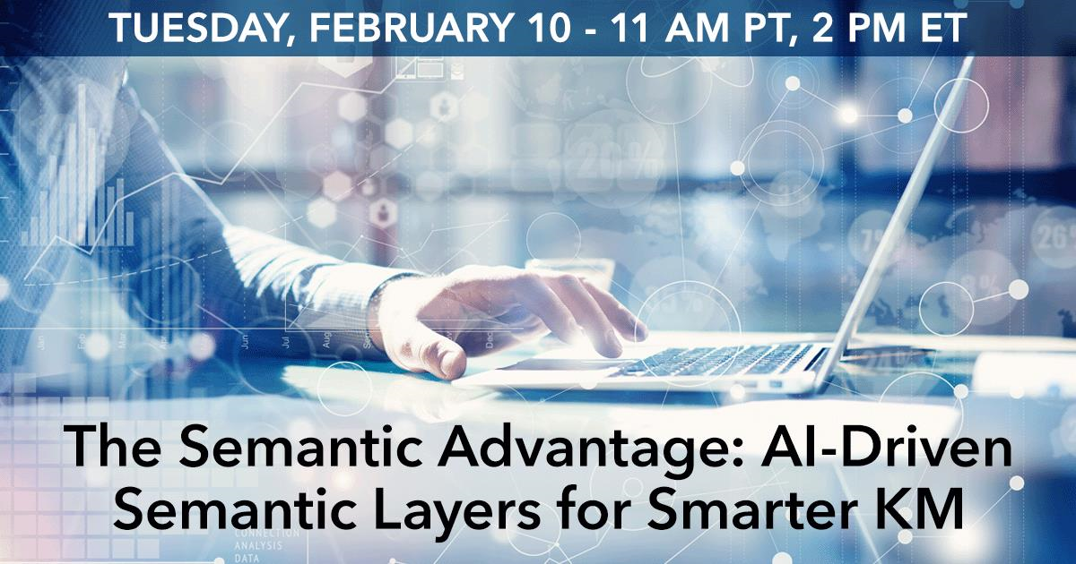 Don't miss this live event on Tuesday, February 10th, 11:00 AM PT / 2:00 PM ET.  Register Now to attend the webinar The Semantic Advantage: AI-Driven Semantic Layers for Smarter KM.