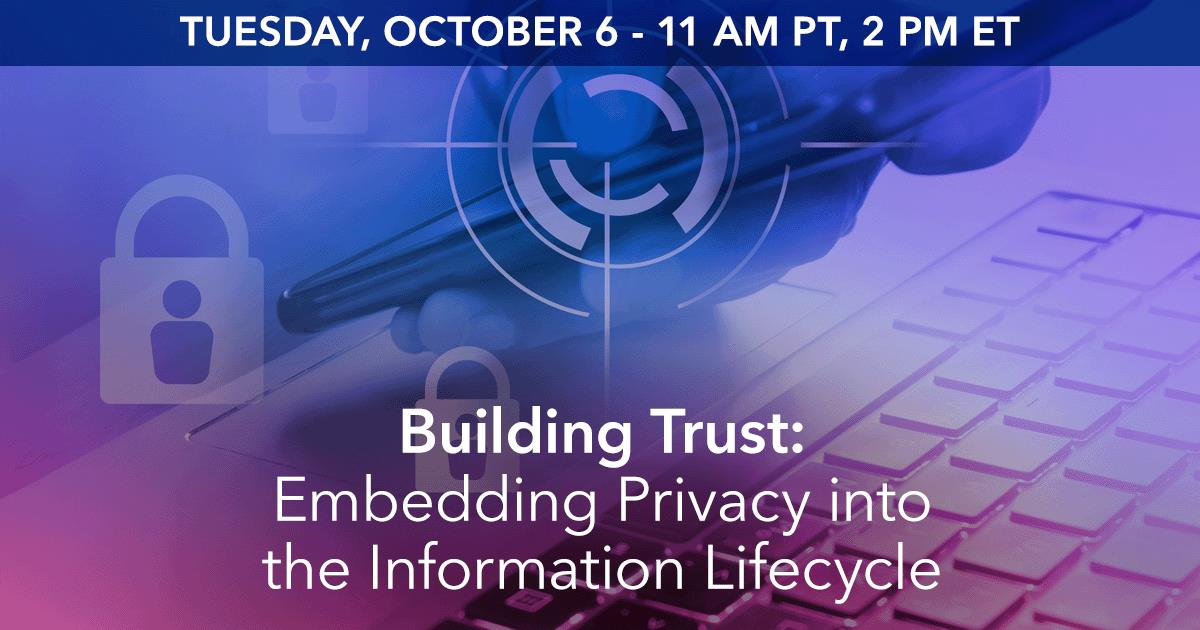Register Now to attend the webinar Building Trust: Embedding Privacy into the Information Lifecycle.