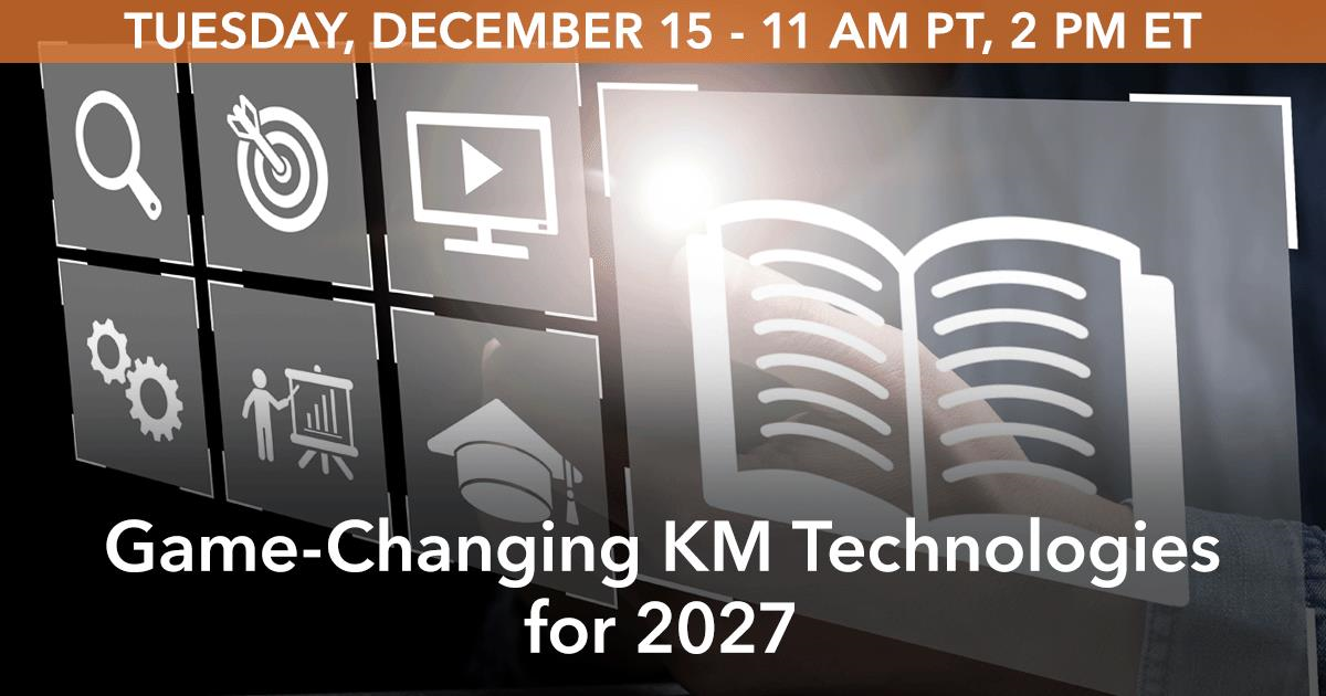 Register Now to attend the webinar Game-Changing KM Technologies for 2027.