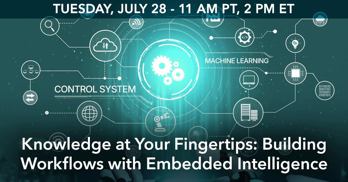 Register Now to attend the webinar Knowledge at Your Fingertips: Building Workflows with Embedded Intelligence.